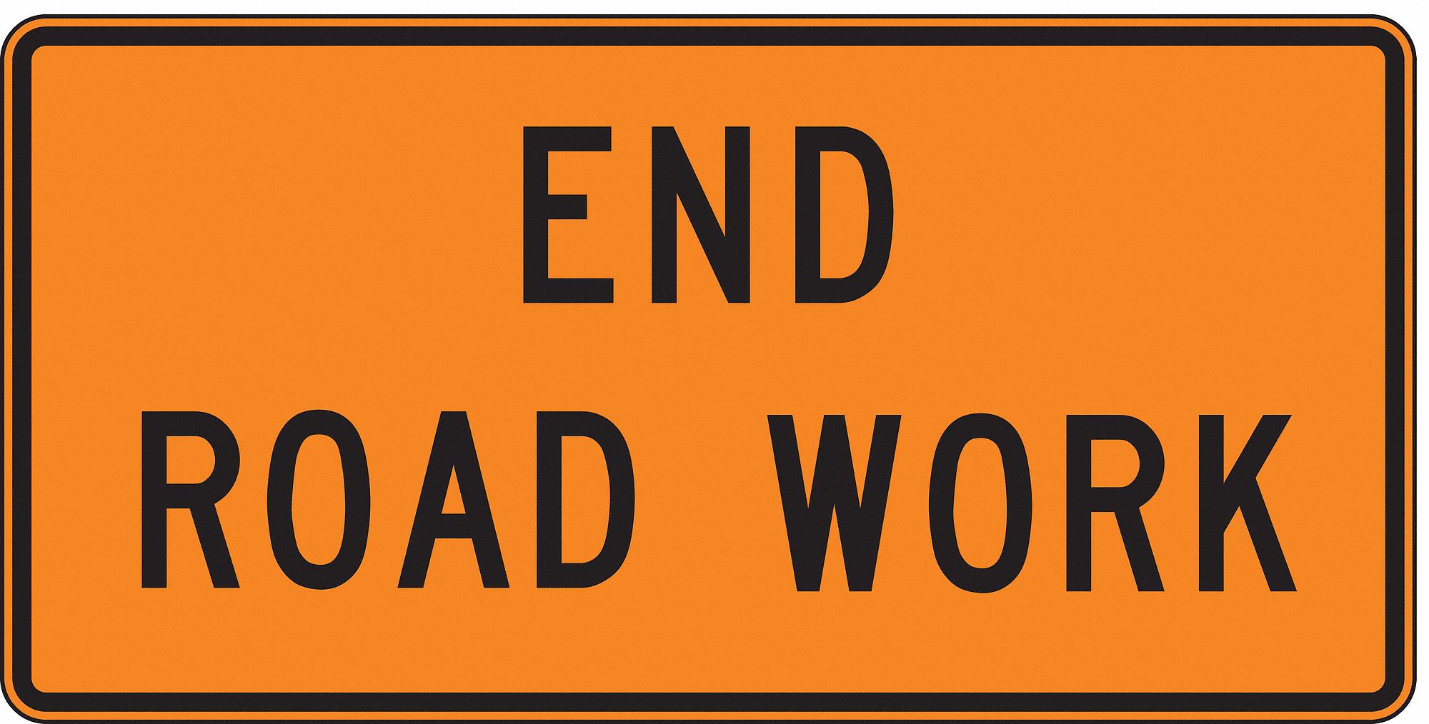 End Road Work Sign - 48X24 Inch - Superbright Reflective Roll-up Sign. Ad Our Signs Keep Traffic Running Smoothly Around Lot. Manual on Uniform Traffic Control Devices MUTCD is recognized as the national.